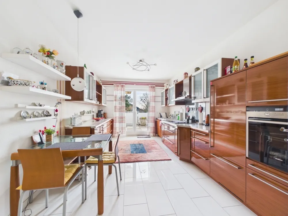 Die hochwertig eingerichtete, großzügige Küche rundet das Raumangebot perfekt ab und lässt das Herz der Hobbyköchin / des Hobbykochs höher schlagen. Ein praktischer Vorratsraum neben der Küche bietet Platz für Regale und z.B. vielleicht einen zweiten Kühl/Gefrierschrank.