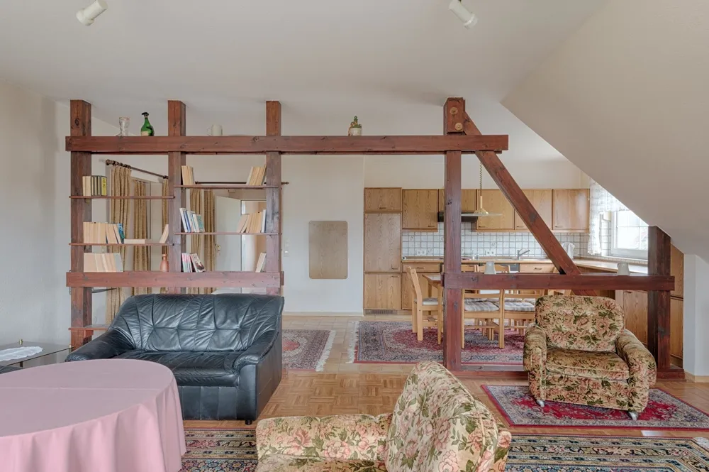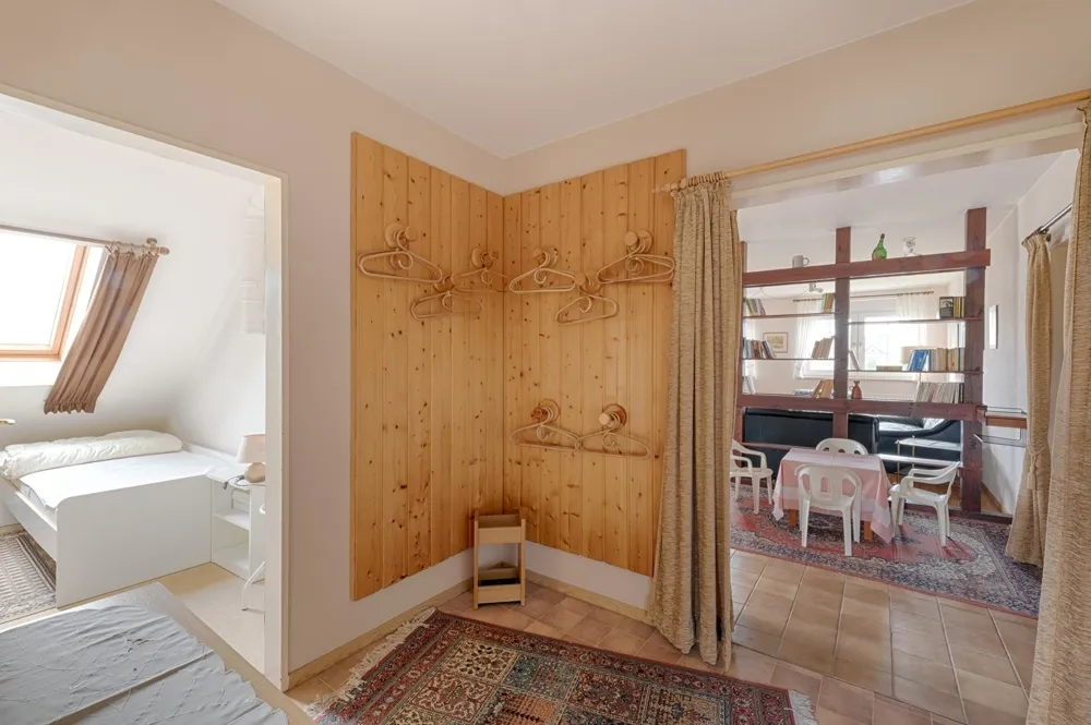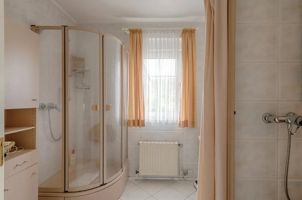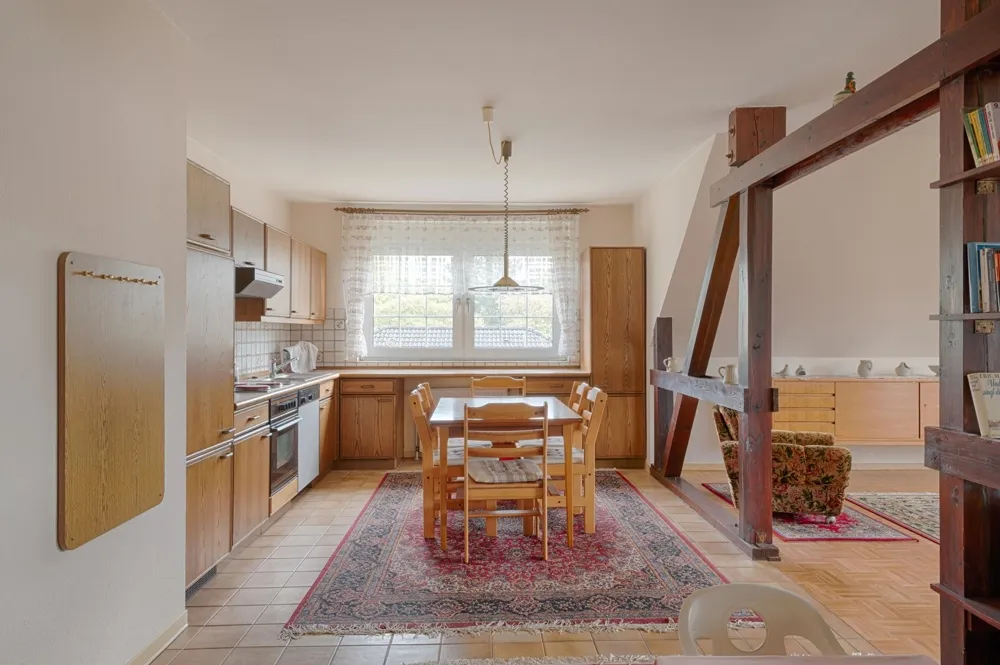 Der erste Stock besticht mit charismatischen Fachwerkelementen im Wohnzimmer, das stilvolle Parkett verleiht dem Raum eine gemütliche Atmosphäre. Zudem gibt es hier eine offene Küche sowie ein Badezimmer mit Wanne. Der Teppichbodenbelag in den restlichen Räumlichkeiten des Obergeschosses vermittelt ein behagliches Wohngefühl. Das Obergeschoss bietet zudem die Möglichkeit eine eigenständige Einheit daraus zu machen, oder es dient als Erweiterung des benötigten Wohnraumes. Ideal für erwachsene Kinder, Großeltern oder zur Vermietung.