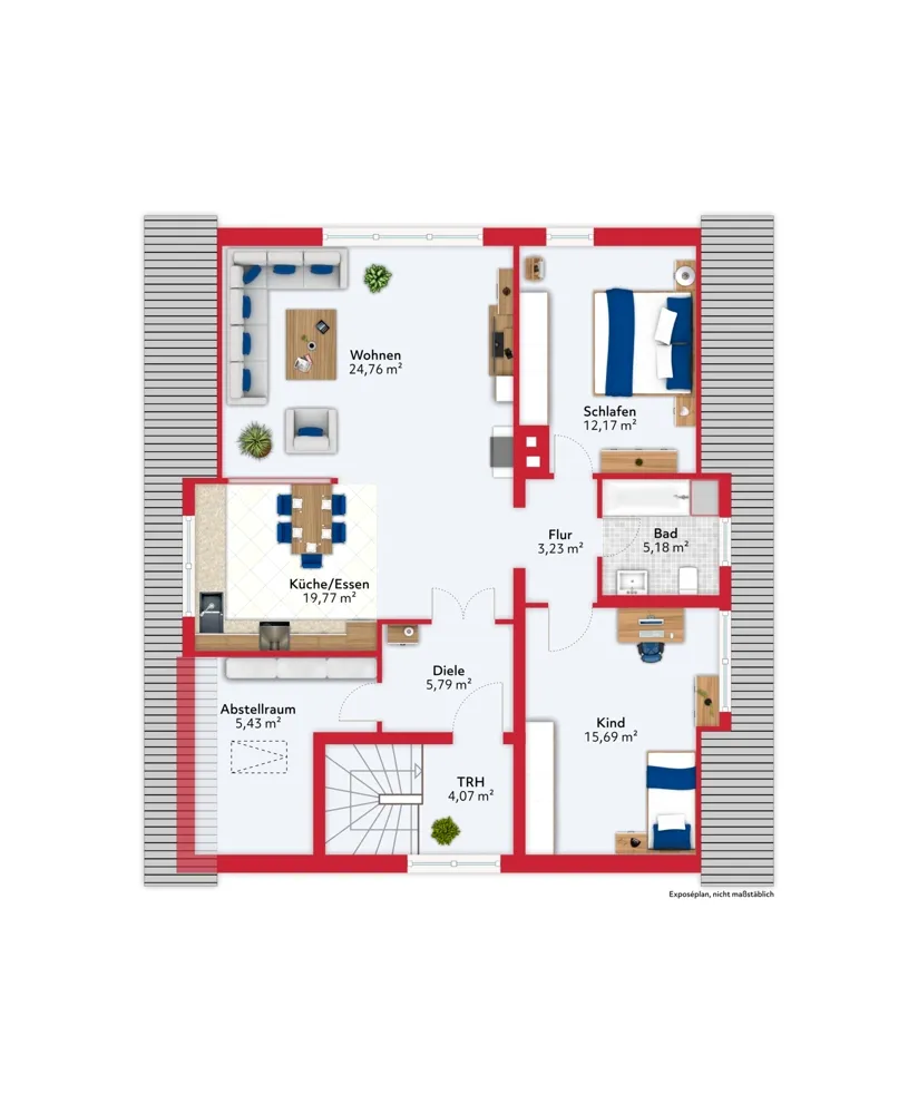 - zwei offen und weit geschnittene Wohn- und Essbereiche