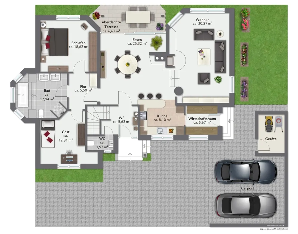 - Direkter Zugang zum Carport über die Nebeneingangstür zum Hauswirtschaftsraum