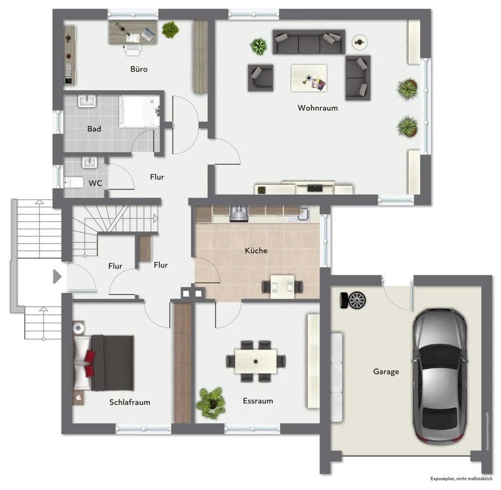 Doppelgarage, separater Kellerzugang,
