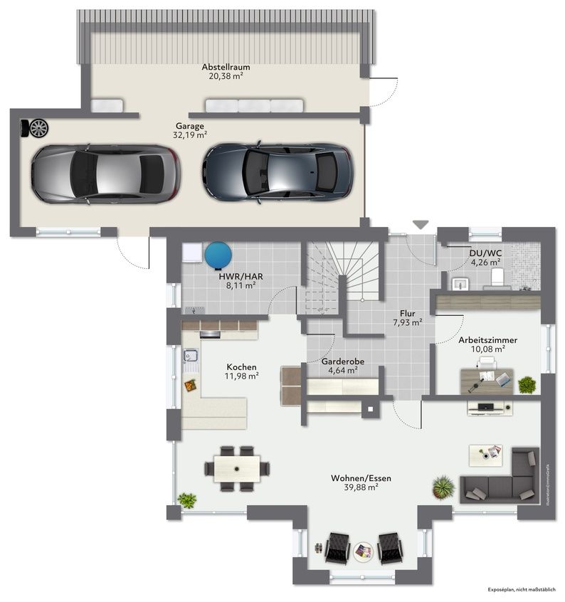 Abgerundet wird das Anwesen durch eine ca. 35 m² große Terrasse sowie eine geräumige Doppelgarage mit separatem Abstellraum und integriertem Wechselrichter der Photovoltaikanlage. Diese Immobilie präsentiert sich als modernes, energieeffizientes Zuhause mit äußerst gepflegter Gesamtwirkung.