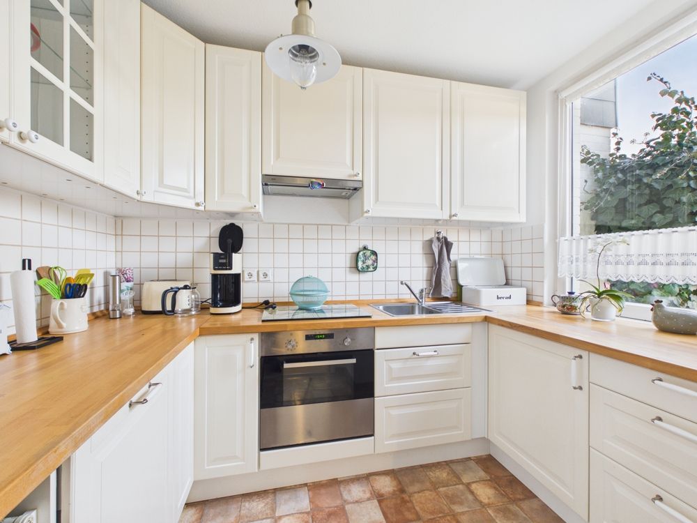 Im Erdgeschoss erwartet Sie ein einladender Wohn- und Essbereich mit direktem Zugang zur Terrasse. Die vorhandene Einbauküche (Baujahr 2010) ist funktional ausgestattet und bietet ausreichend Stauraum sowie Arbeitsfläche.