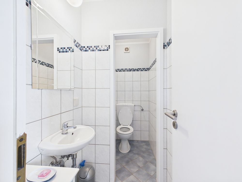 Ein Gäste-WC im Erdgeschoss erhöht den Wohnkomfort. Das Badezimmer im OG ist mit Duschwanne, WC sowie einem Waschmaschinenanschluss ausgestattet und funktional gestaltet.