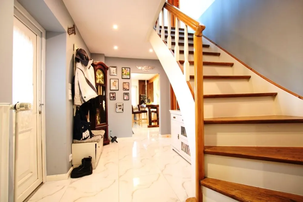 Dieses Einfamilienhaus ist mit einer Gasleitung im Haus ausgestattet und die Möglichkeit, einen Glasfaseranschluss zu installieren, ist bereits durch die vorhandene Glasfaser in der Straße gegeben – perfekte Voraussetzungen für modernes Wohnen.